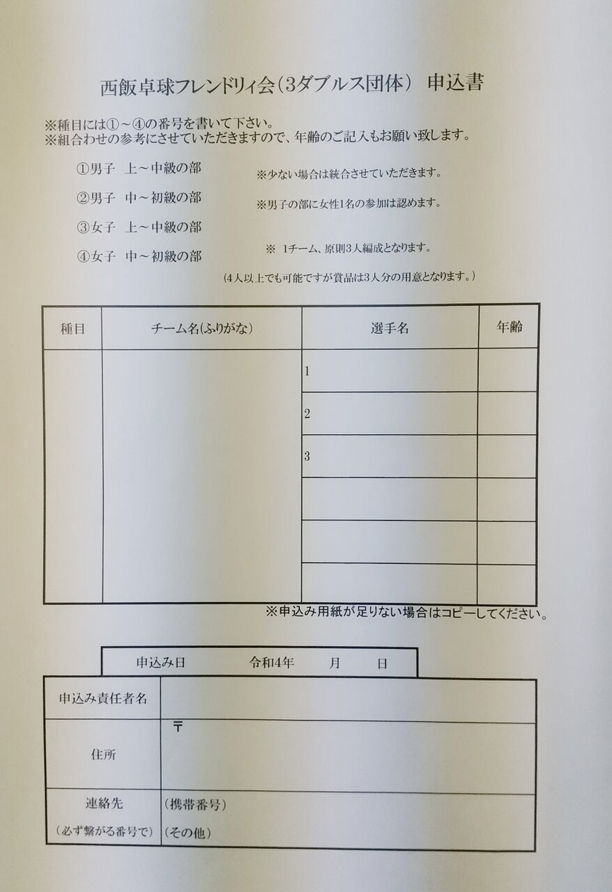 この度下記の通り西飯卓球フレンドリィ会を開催する運びとなりました。