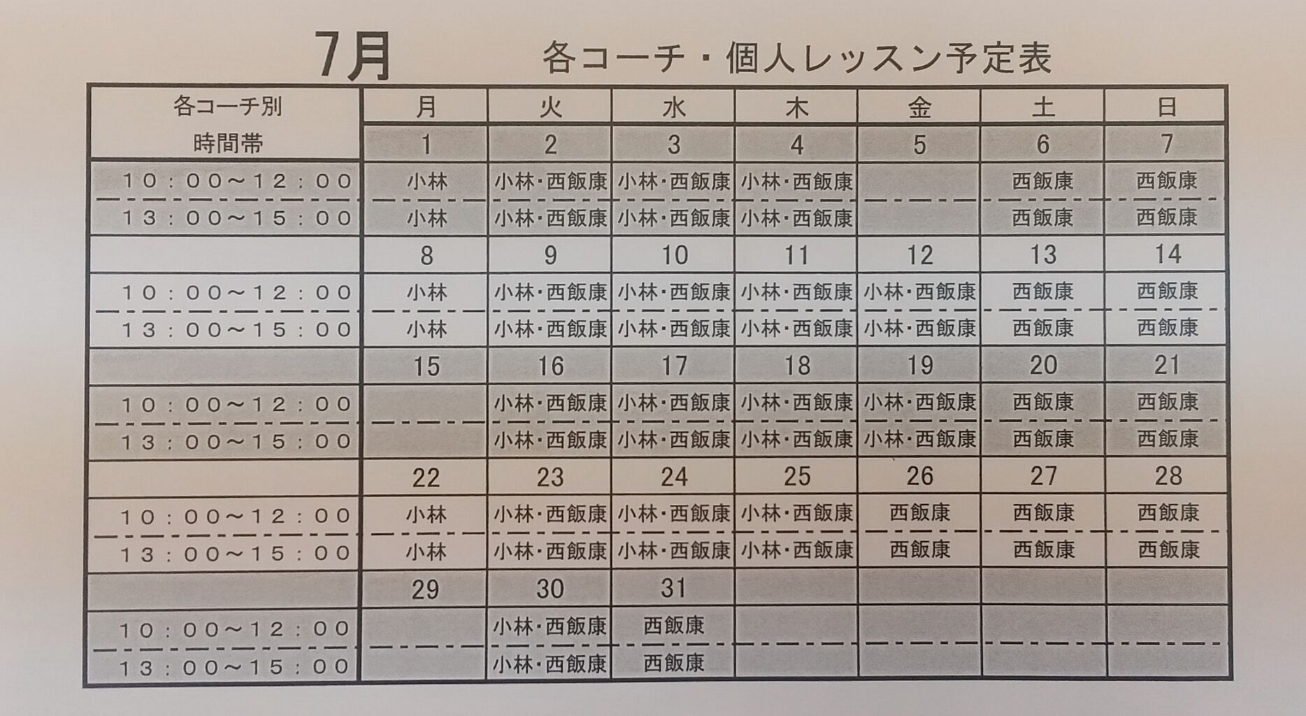 個人レッスンの料金(チケット)は、西飯スポーツ店でお買い求め下さい。