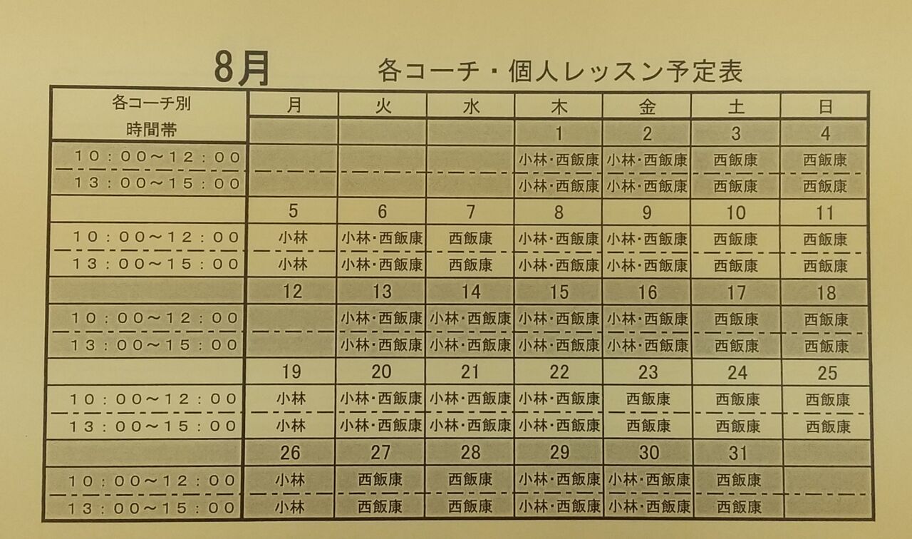 ☆各コーチの名前がある日がレッスン予約可能となります。