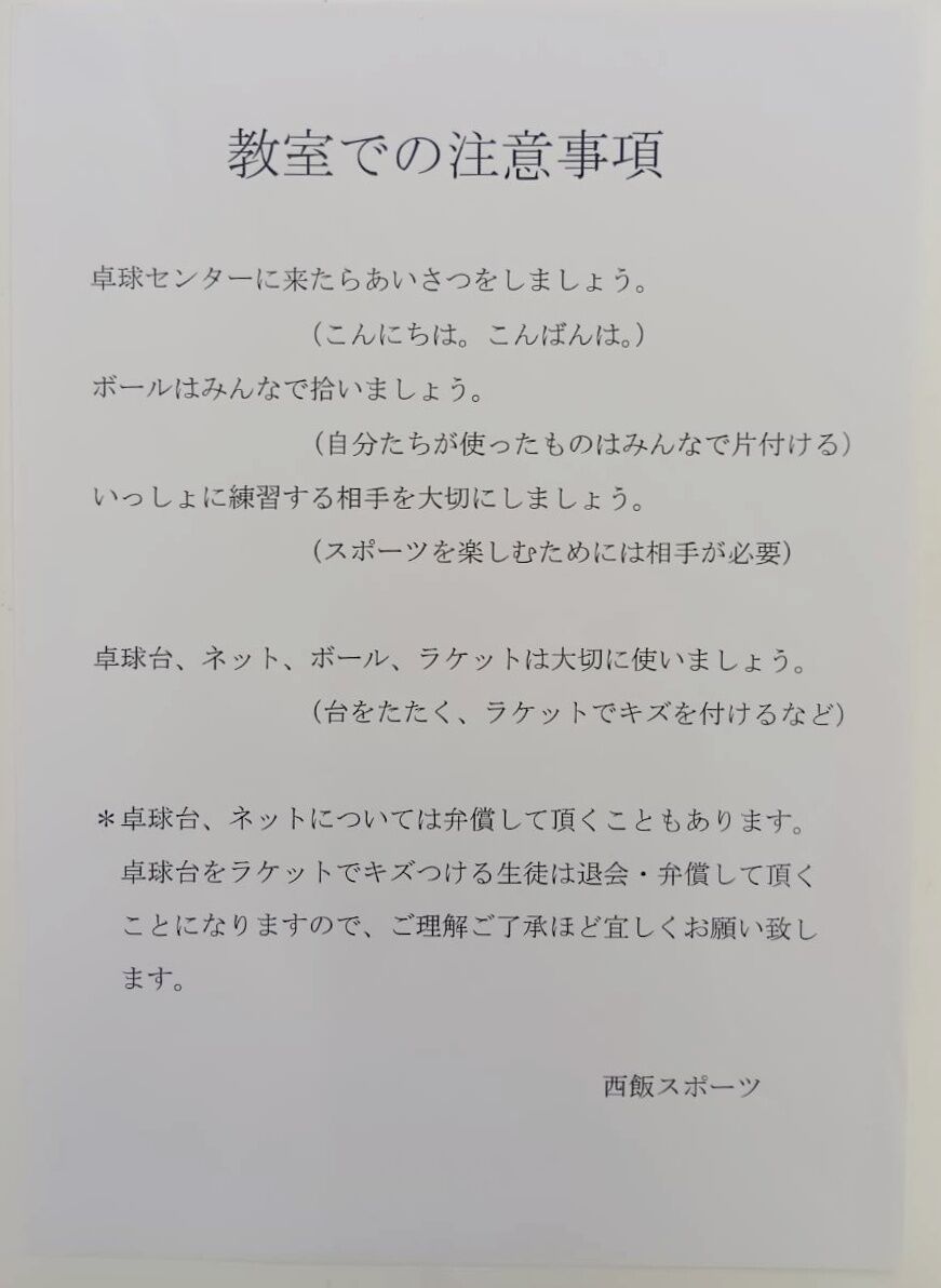 卓球場来られる際のお願い