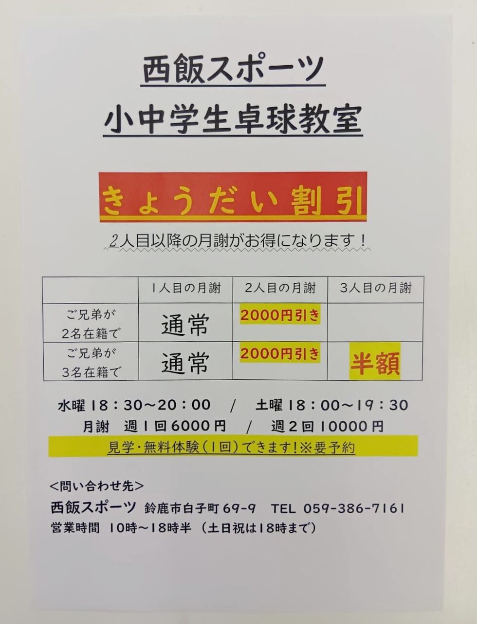 西飯スポーツ ℡ 059-386-7161