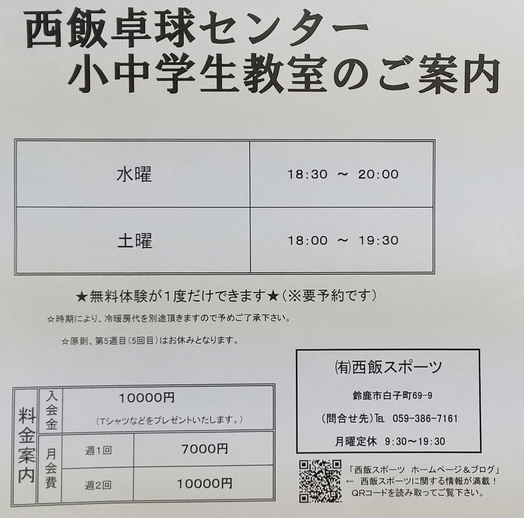 4月小中学生卓球教室休みについて
