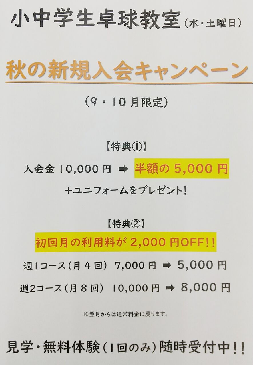 秋の新規入会キャンペーン